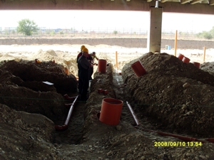 | Interior drainage networks | External sewage systems | Manual and mechanized compaction of the embankment before casting concrete floor |