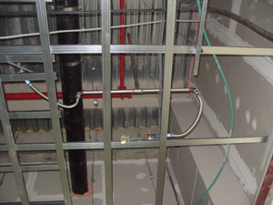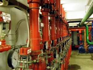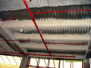 | Head-dowm spinkler mounted in false ceiling | Pre-equipped sprinkler installation | Complete area interior hydrants | Fire extinguishing installation with standard FM sprinklers/td> |
